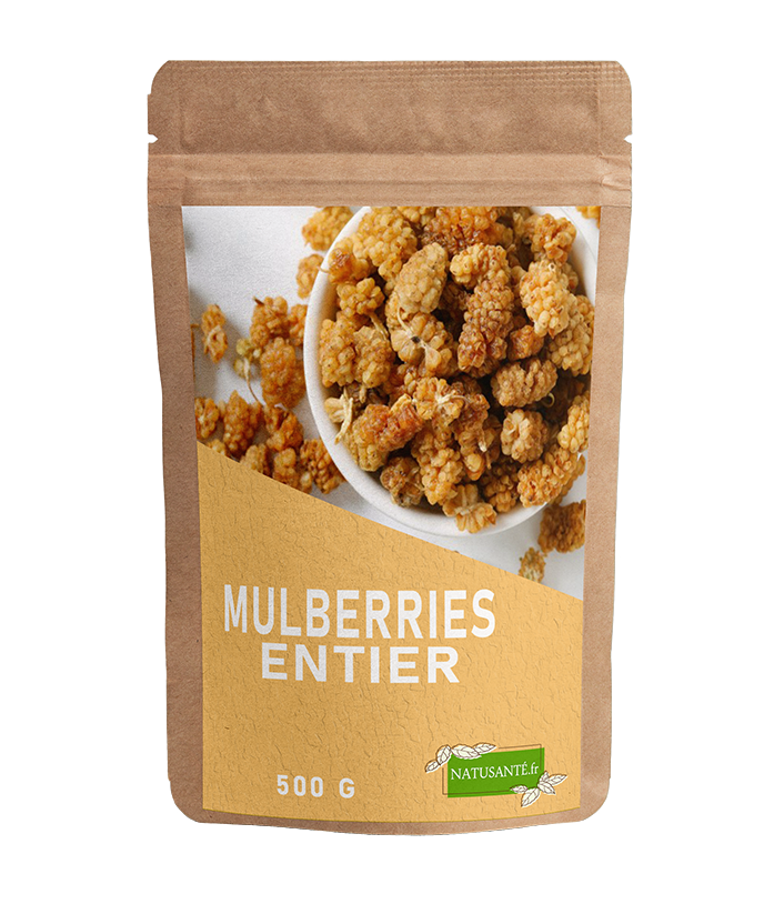 - Ingrédients : 100 % mulberries blanches séchées issues de l’agriculture biologique.