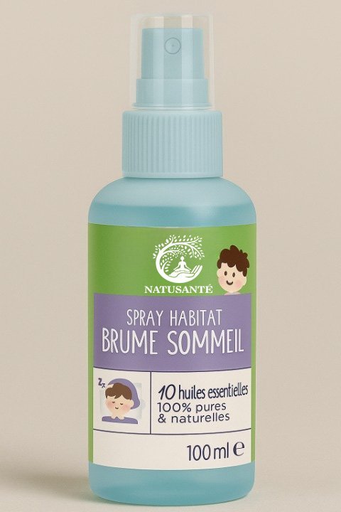 Spray d’ambiance formulé avec 10 huiles essentielles 100% pures et naturelles, spécialement conçu pour favoriser un environnement propice au sommeil, apaisant et relaxant, idéal pour les enfants.
