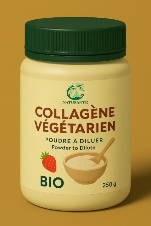 Complément alimentaire à base de collagène végétarien, formulé pour contribuer à la beauté de la peau, renforcer les articulations et favoriser une bonne santé générale, tout en respectant un mode de vie végétarien.