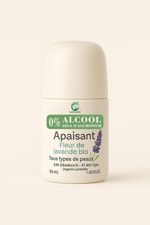 Le Déodorant Apaisant Fleur de Lavande Bio de NATUSANTÉ offre une protection 24 heures tout en respectant les peaux sensibles. Formulé sans alcool ni sels d’aluminium, il neutralise les odeurs efficacement tout en apportant une douce senteur naturelle de lavande bio.