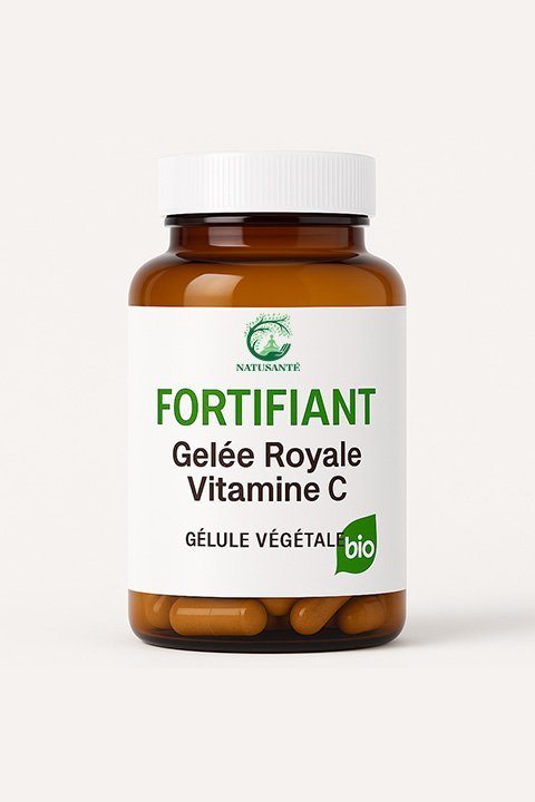 Complément alimentaire à base de gelée royale et vitamine C pour renforcer les défenses naturelles et soutenir la vitalité.