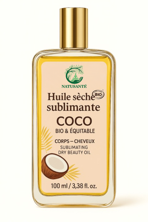 L’Huile sèche sublimante Coco bio de NATUSANTÉ nourrit intensément la peau et les cheveux tout en leur apportant douceur, éclat et souplesse sans effet gras. Idéale pour sublimer le bronzage et parfumer délicatement grâce à son doux parfum naturel de coco, elle pénètre rapidement pour une utilisation quotidienne.