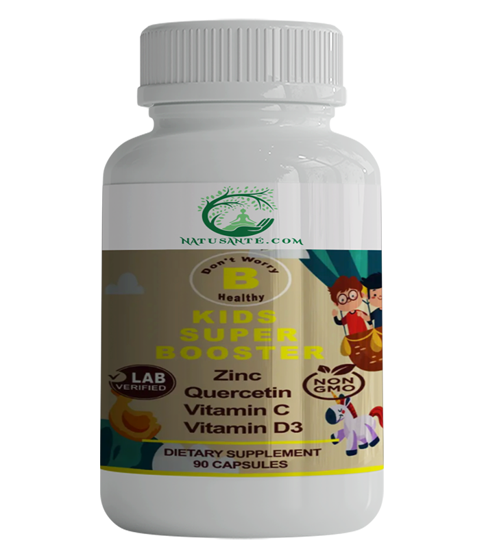 Inspiré de la formule Z-Stack Kid du Dr Vladimir Zelenko, KIDS SUPER BOOSTER est un complexe immunitaire naturel et sans OGM, spécifiquement conçu pour renforcer les défenses naturelles des enfants*. Il combine 4 actifs synergiques : zinc, quercétine, vitamine C et vitamine D3, tous dosés pour un usage pédiatrique sûr et efficace. Idéal en période hivernale, en cas de fatigue*, de convalescence*, ou pour accompagner les enfants sensibles aux infections virales*, ORL*, allergiques ou asthmatiques*.