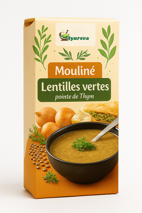 Un mouliné savoureux à base de lentilles vertes biologiques relevé d’une pointe de thym pour une note aromatique subtile. Une recette nourrissante et équilibrée, idéale pour les repas sains au quotidien.