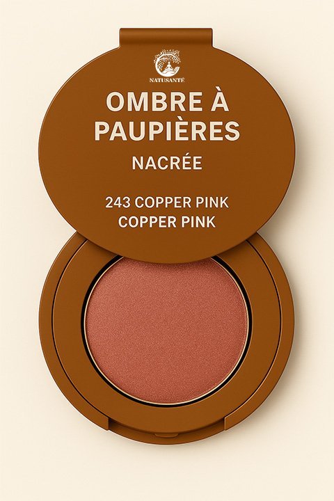 L’Ombre à Paupières Nacrée NATUSANTÉ teinte 243 Copper Pink offre une nuance cuivrée rosée vibrante et lumineuse pour un maquillage des yeux élégant et naturel, adaptée aux maquillages quotidiens ou sophistiqués.