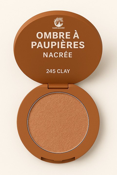 L’Ombre à Paupières Nacrée NATUSANTÉ teinte 245 Clay offre une couleur argile chaude et lumineuse qui sublime le regard tout en apportant de la profondeur et de la chaleur au maquillage des yeux.