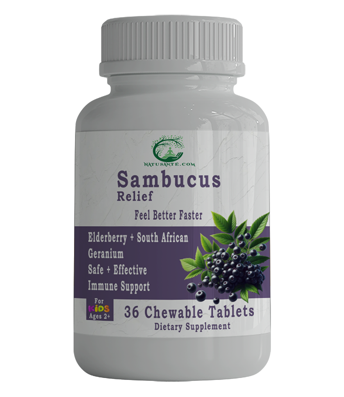 Sambucus Relief est une formule naturelle spécialement conçue pour renforcer les défenses immunitaires des enfants dès 2 ans. Elle associe le Sureau noir (Elderberry), reconnu pour ses propriétés antivirales et antioxydantes*, à un extrait concentré de Géranium sud-africain (Pelargonium sidoides), utilisé traditionnellement pour soulager les infections respiratoires aiguës*. Faciles à croquer, au goût doux et agréable, ces comprimés peuvent être utilisés en prévention ou dès les premiers signes de refroidissement*.
