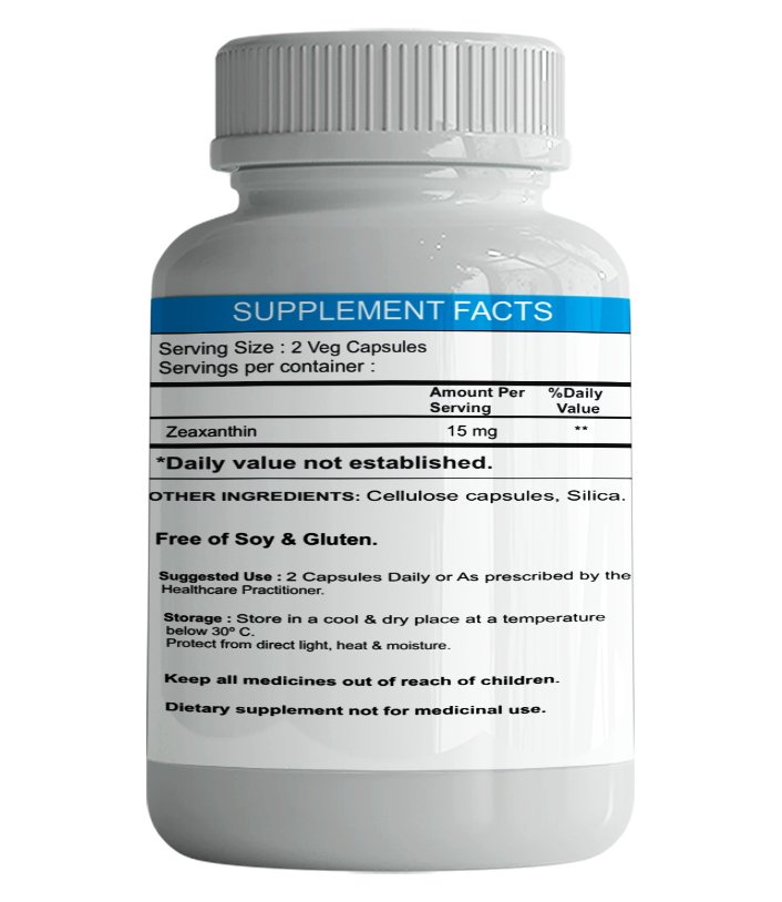 La zéaxanthine est étroitement liée à la vitamine A et se trouve naturellement dans la macula et la rétine de votre œil, avec la lutéine. Elle protège les tissus de votre œil en bloquant les dommages causés par la lumière du soleil et en bloquant les radicaux libres qui peuvent provoquer l’oxydation.